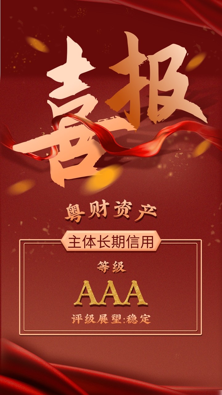 “AAA”主体长期信用评级,充分体现了专业权威机构对公司资本实力、治理能力、经营能力、盈利能力、抗风险能力等方面的认可,以及对公司未来发展的信心。公司将紧密围绕省委省政府中心工作,按照粤财控股的决策部署,聚焦不良资产主业,坚守化解地方金融风险、服务实体经济的初心使命,持续提升经营效益,积极服务地方社会经济发展。